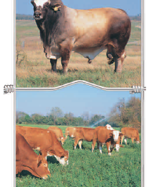 Cerca de alambres verticales y horizontales entrelazados formando cuadros graduados, para uso de ganadería, protección de cultivos, división de pastizales.