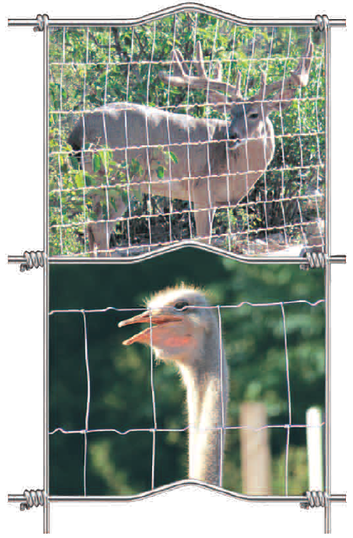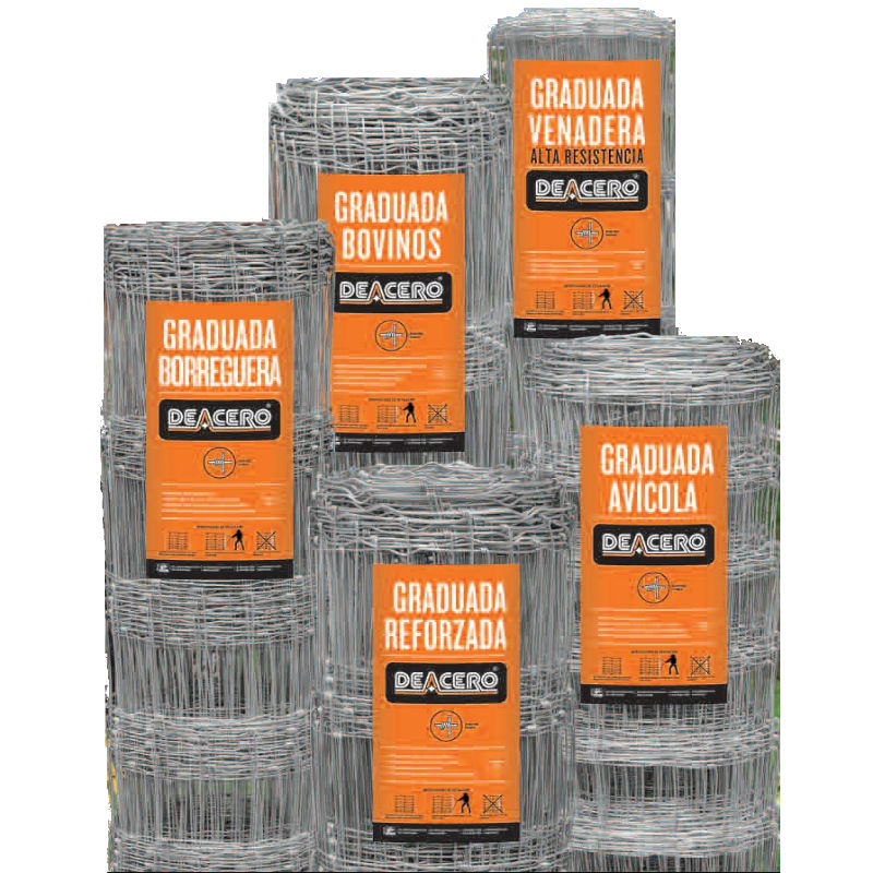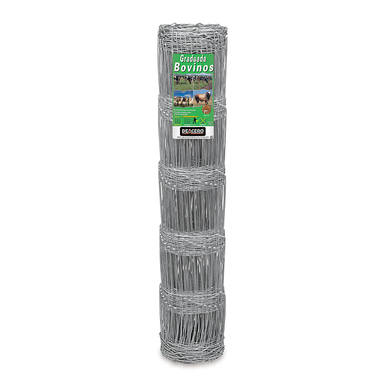 Cerca de alambres verticales y horizontales entrelazados formando cuadros graduados, para uso de ganadería, protección de cultivos, división de pastizales.