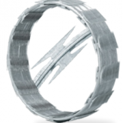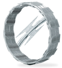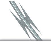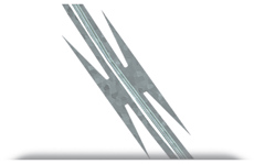 Cintilla metálica galvanizada su contorno cuenta con navajas altamente punzo cortantes espaciadas una de otra y sirve como protección complementaria para cualquier tipo de malla, muros y diversas áreas vulnerables en donde se requiere una protección extrema.
